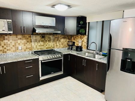- **Distribución:** 4 cómodas recámaras, 3 baños completos y un medio baño. En la planta baja, una recámara con dos camas matrimoniales y sofá cama; tres habitaciones en la planta alta, todas con aire acondicionado y TV.