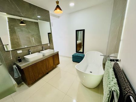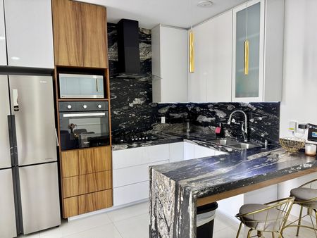 Cada habitación cuenta con camas matrimonial y King size en su recamara principal, pensadas para brindarte un descanso pleno. La cocina está totalmente equipada, incluye dos pantallas para entretenimiento, acabados modernos y acceso directo a la alberca del complejo.